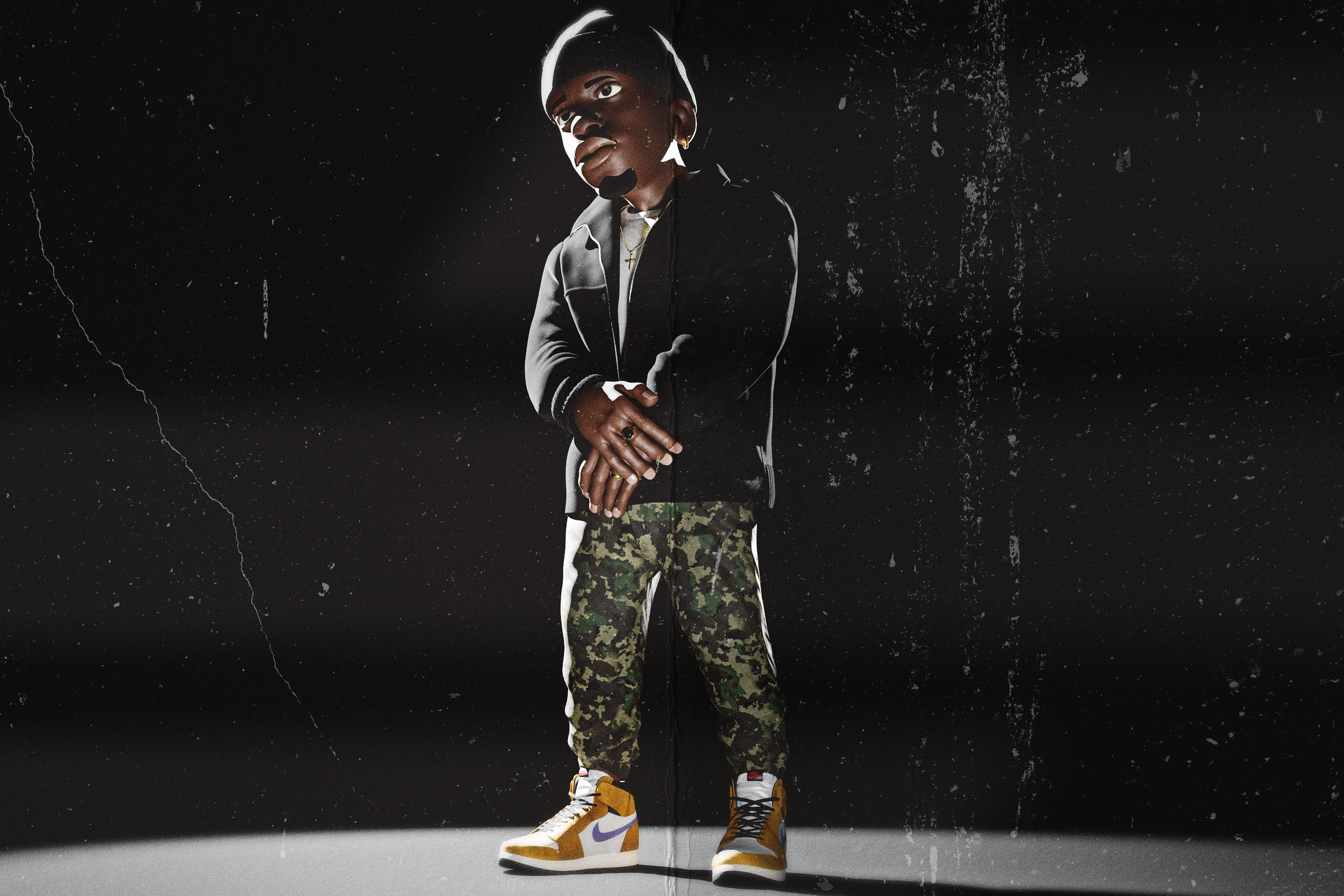 Mon objectif était de créer une représentation 3D de l'artiste en simplifiant ses caractéristiques pour donner un style particulier au personnage.
